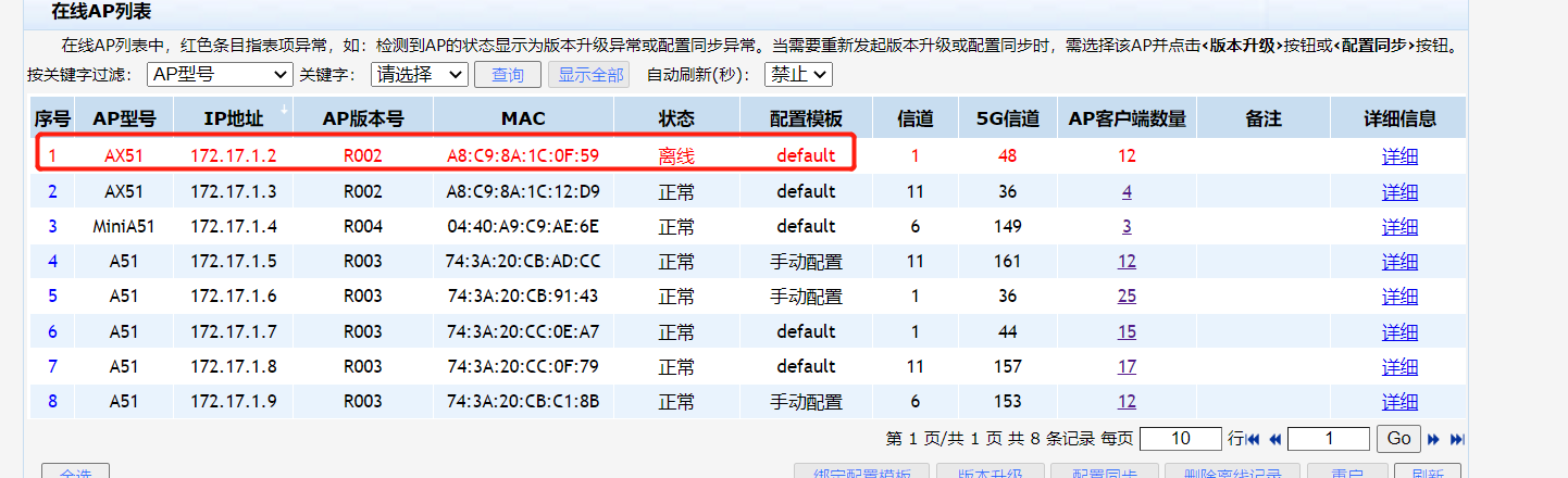 新增AP显示离线