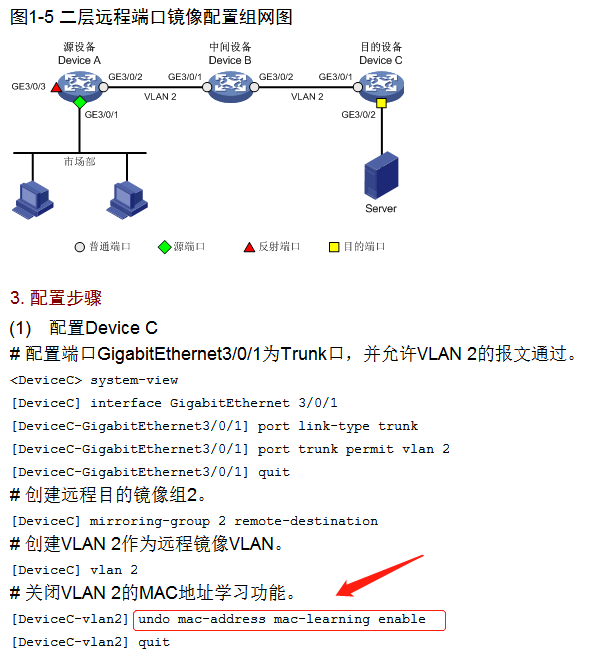 用示例图来举例。比如市场部有一台电脑记作X,我想获取X收发的所有报文。假设不关闭任何设备的mac学习功能。