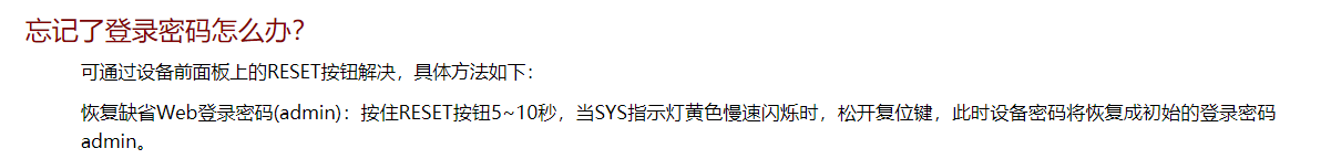看下设备上是否有console口呢,能否通过console线登录。如果不能通过console线登录的话那就只能按reset重置了。