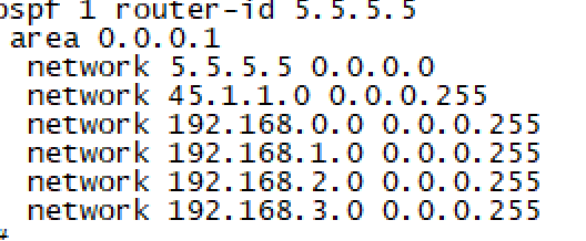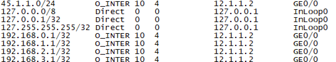 请教一下,就是在做一个实验的时候如图R1-R5是串联在一起,R1R2R3在区域0,R3R4R5在区域1。router-id使用的是各自的loop0的地址。我在R5上宣告网段的时候使用loop1 192.168.0.1/24模拟业务网段,它和45.1.1.0这个网段一起被宣告进 区域1中。在R1上查看路由表时,为什么45的网段掩码时24,而192的掩码就变成的32。而且为什么出接口一个使用的是逻辑接口,一个是物理接口。