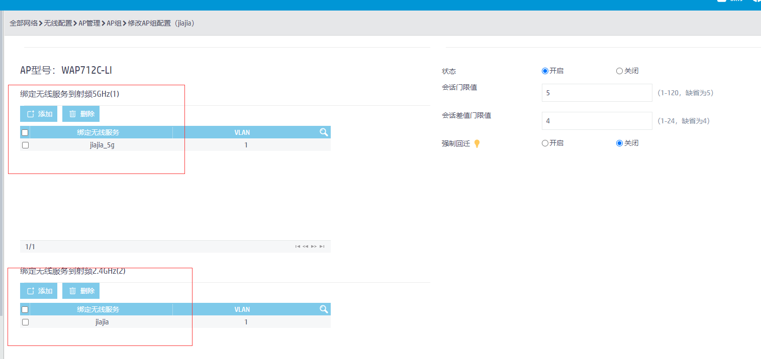 第二步,分别在2.4G和5G射频上绑定这2个模板即可