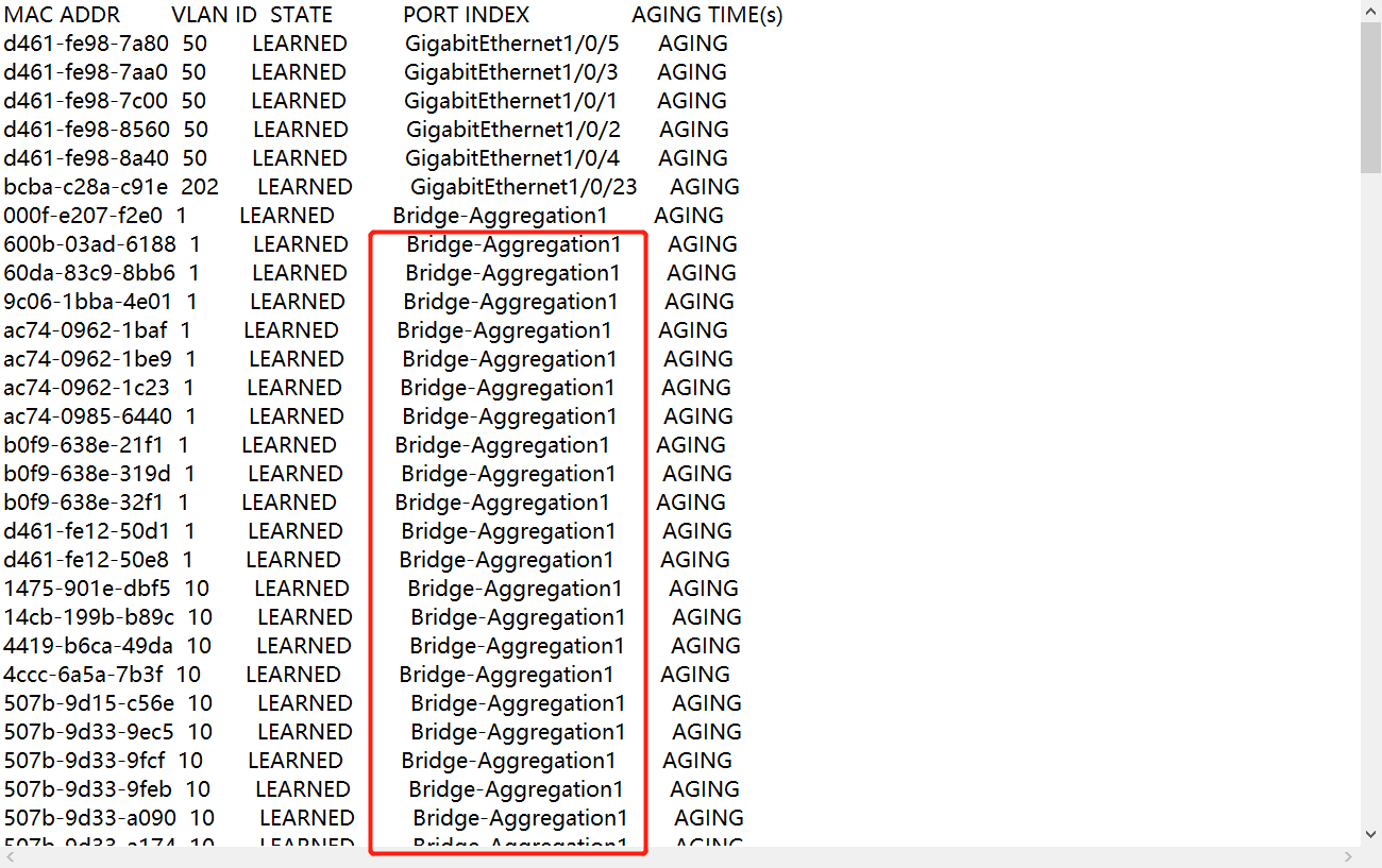 你这个聚合口下放行的vlan中的所有mac都会学到