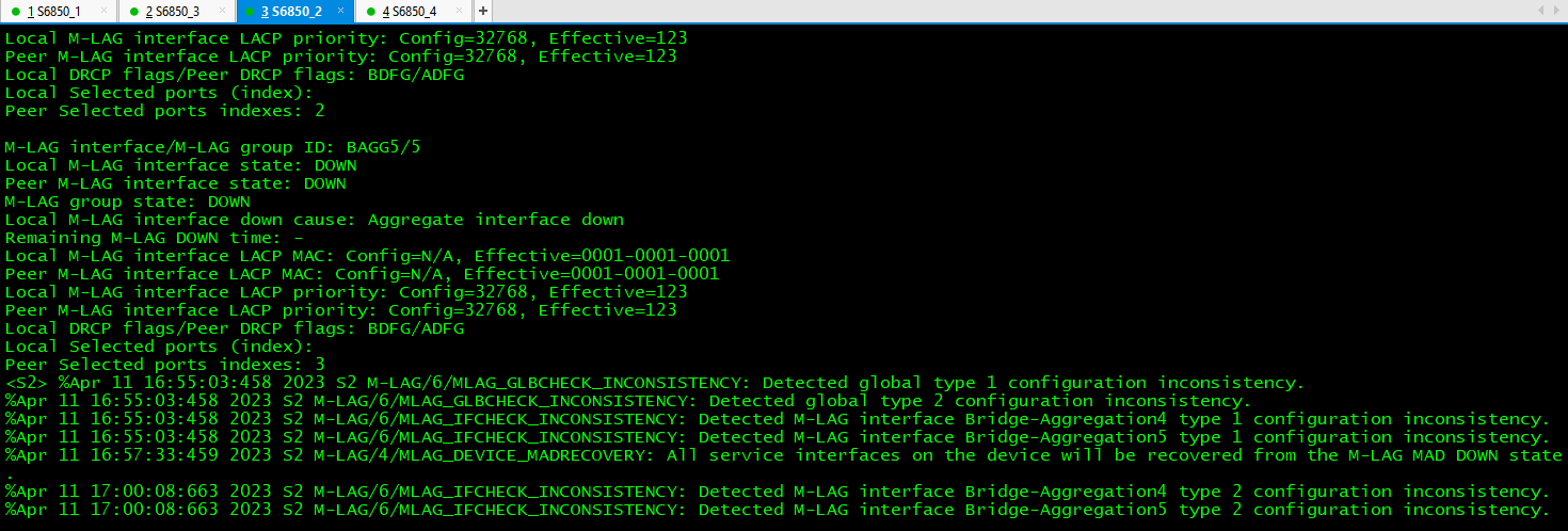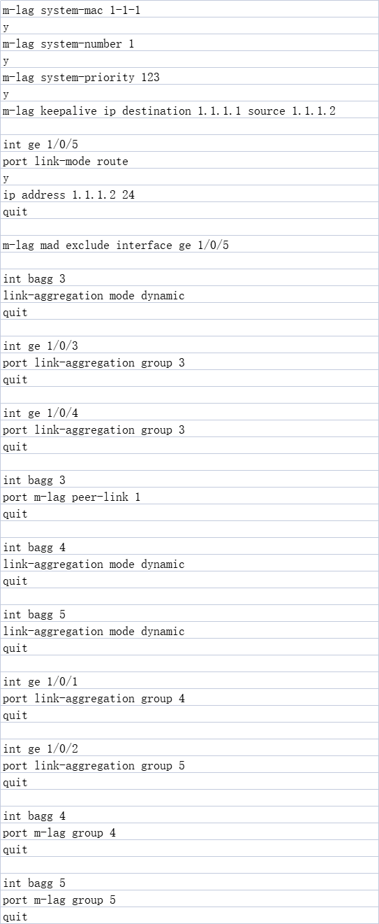 1.S1和S2做M-LAG,ge 1/0/3和ge 1/0/4做peer-link,ge 1/0/5做保活检测,ge 1/0/1在动态二层聚合组4,ge 1/0/2在动态二层聚合组5。
