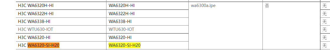 现在的情况是用到了三款AP:WA4320-H20,WA630-SI,WA6320-SI-H20,现在WA6320-SI-H20这个型号的ap全部都上线不了,同一交换机下的其它型号的AP可以上线,在官网上看此版本配套的设备的AP版本发现所处ac没有对应的WA6320A版本,而WA6320-SI这个型号的AP在官网上配套的版本是WA6300,并且项目上的AC里面的版本包含WA6300,可以正常上线,是不是因为AC上没有这个WA6300A的版本原因导致WA6320-SI-H20这个型号的ap上不了线啊