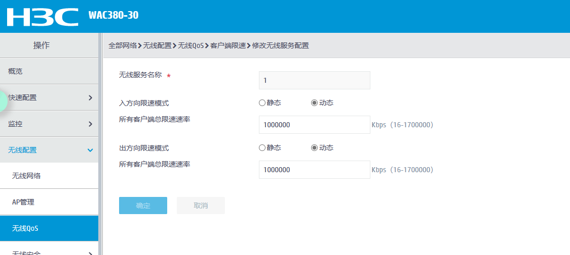 静态模式,则所有客户端的限速速率为配置的值。