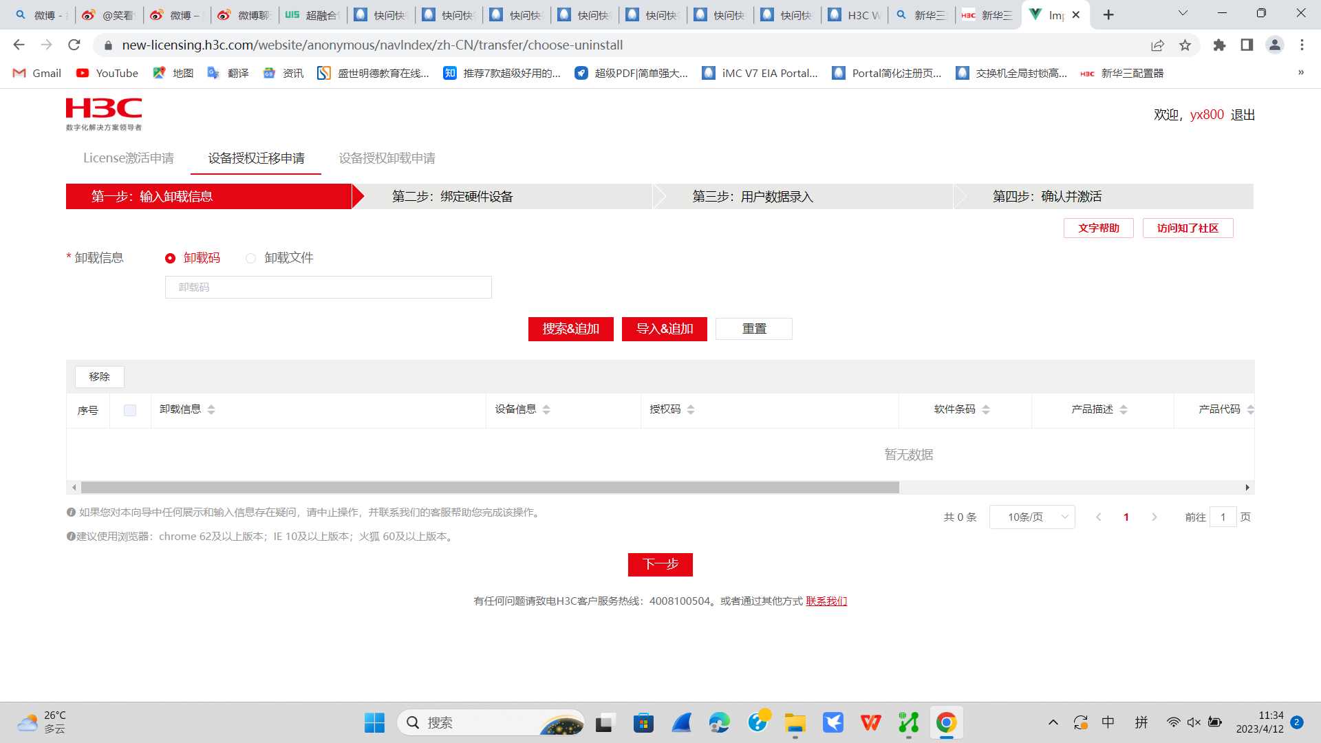 完成H3C官网用户登录后,请尽快完成设备授权迁移申请。如果长时间(当前要求为4小时)内未完成授权迁移申请,H3C License管理平台会要求您重新登录H3C官网,并自动从当前操作页面退回到“设备授权迁移申请”第一步。