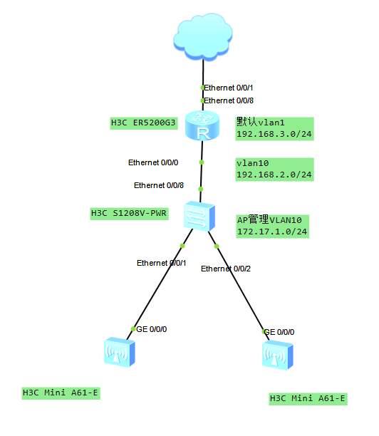 2、AP管理vlan设置为vlan10 (172.17.1.0/24) ,