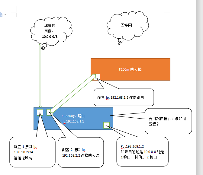 要我说应该把防火墙和路由器的位置反一下,路由器放在互联网出口,把连接城域网的接口放在防火墙上面,这样安全性更好一点