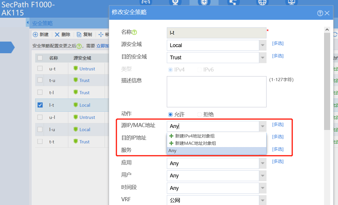 使用安全策略,在安全策略里新建个mac 地址对象组