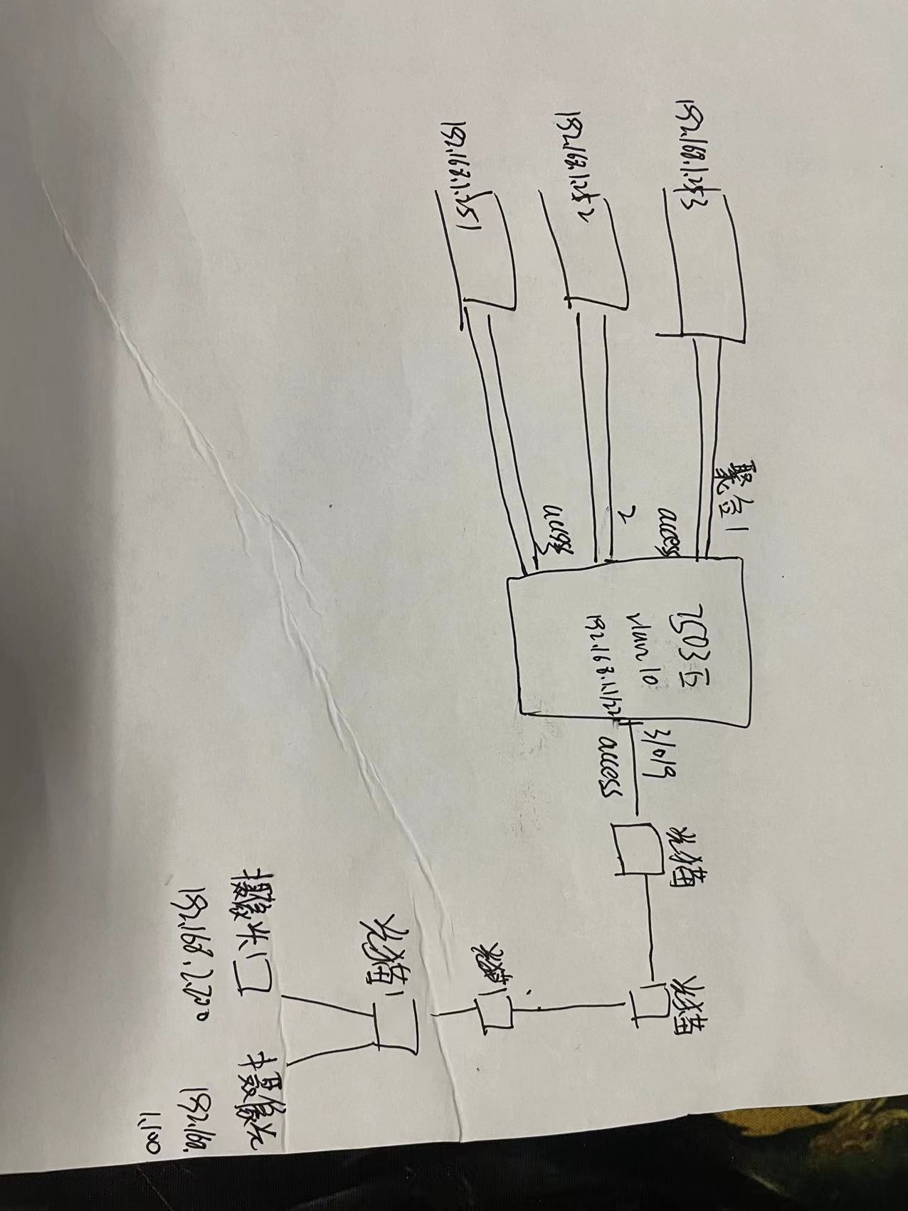 养殖园区在做监控网络,后端与前端用的紫光华智的设备,核心交换机配置vlan 设置网关地址,给华智服务器与存储配置聚合链路,前端放通access,目前核心与后端设备互联是通的,核心交换机ping服务器地址是通的,前端摄像头地址无法学习到,电脑接核心机房光猫,摄像头的地址是可以ping通的,不知道什么问题