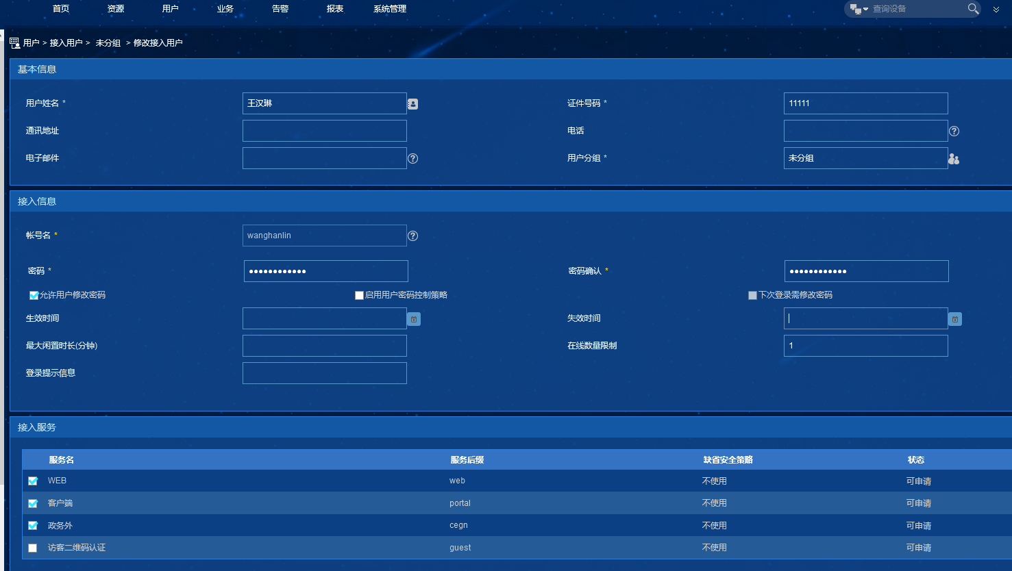 iMC IPM(智能门户管理)账号认证方式从7.3(E0506)版本开始支持限制同一个账号同时在线的数量,常见的是根据用户分组设置在线用户数,本文举例说明。