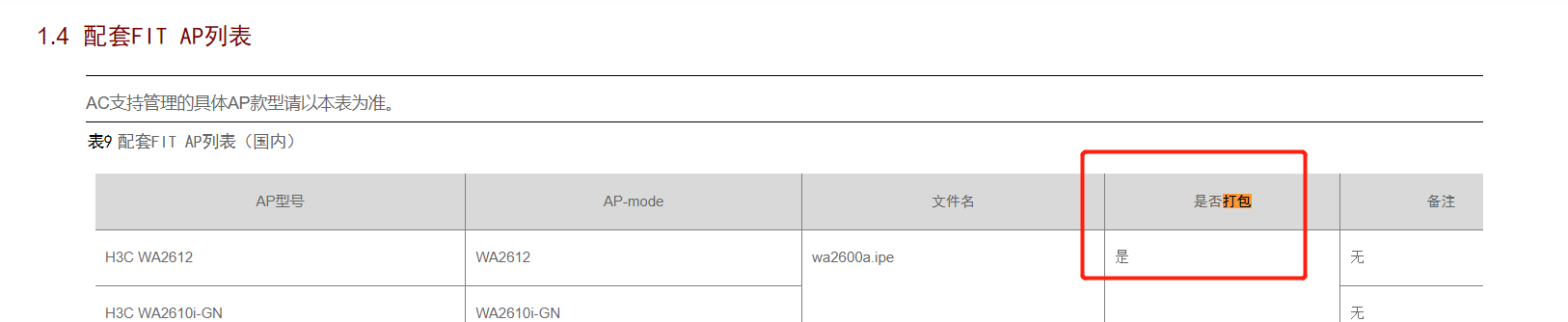 有些型号的ap可能不打包,具体要看版本说明书