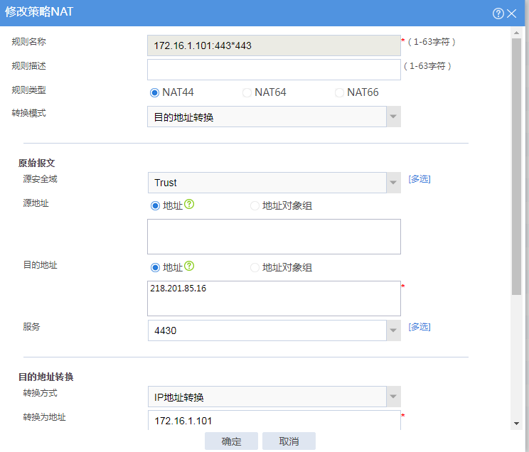 telnet 172.16.1.101 800 通,telnet 172.16.1.101 4430通;