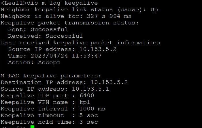 m-lag keepalive ip destination 10.153.5.1 source 10.153.5.2 vpn-instance kpl