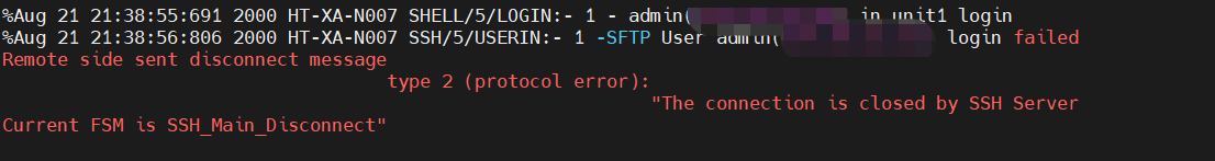 ssh 交换机输入完用户名密码直接短线,提示如下: