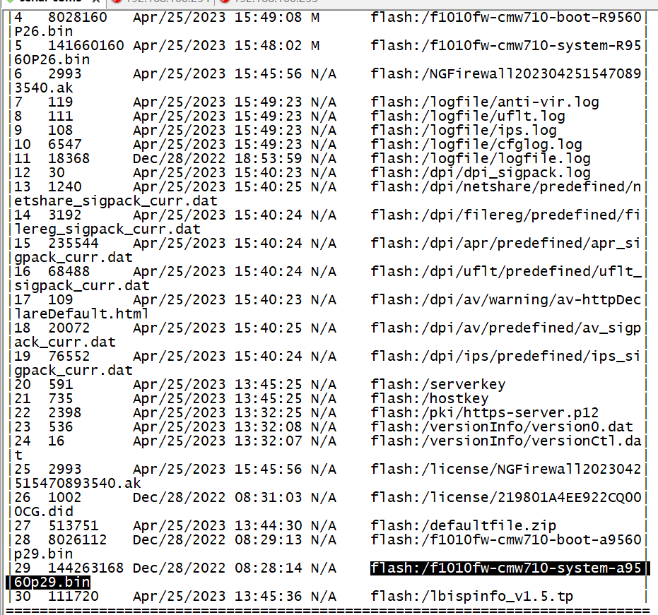 boot-loader file boot slot1#flash:/f1010fw-cmw710-boot-a9560P29.bin system slot1#flash:/f1010fw-cmw710-system- a9560P29.bin all main