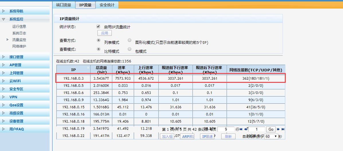 为了保证局域网内所有用户都能正常使用网络资源,您可以通过IP流量限制功能对局域网内指定主机的流量进行限制。