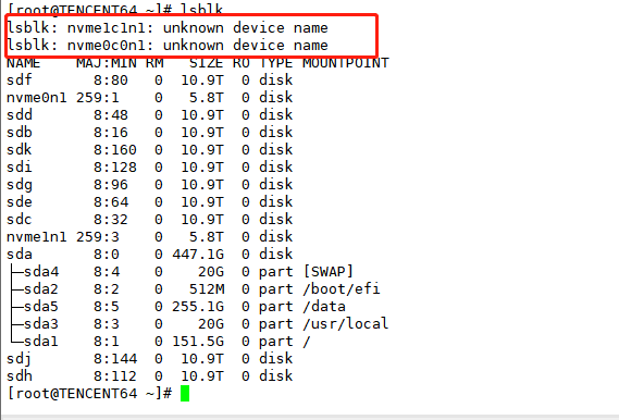 lsblk: nvme1c1n1: unknown device name