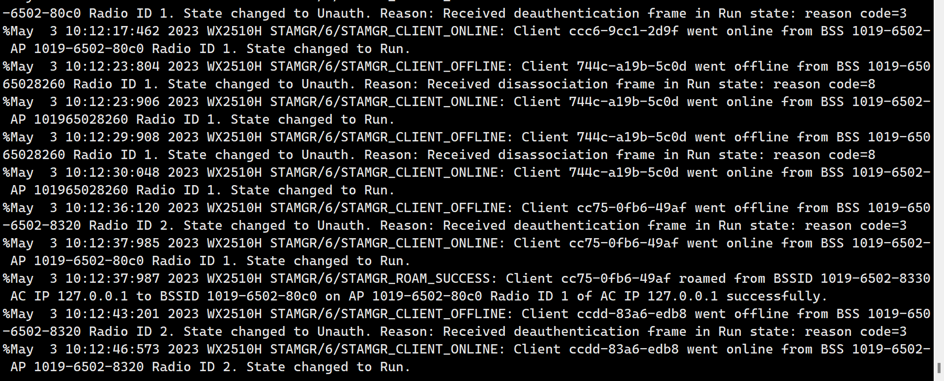 wlan static-blacklist mac-address 90c5-4a5a-ad43