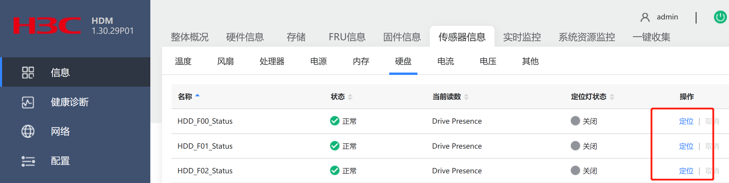 通过HDM口进去,可以点亮硬盘UID灯