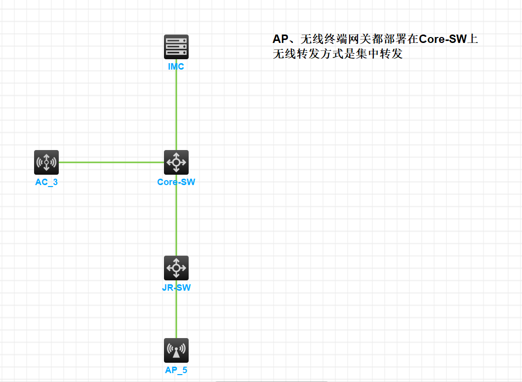 无线终端和AP的网关都部署在Core-SW交换机