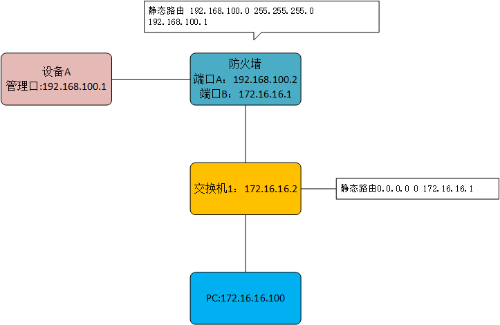1、设备A需要设置默认路由,指向192.168.100.2