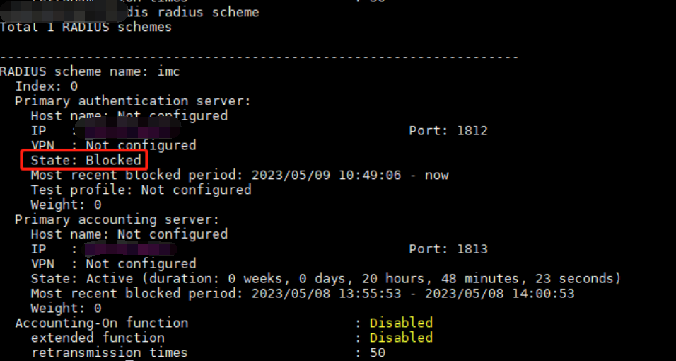 RADIUS/7/EVENT: Found request context, dstIP: x.x.x.x; dstPort: 1812; VPN instance: --(public); socketfd: 334; pktID:8.