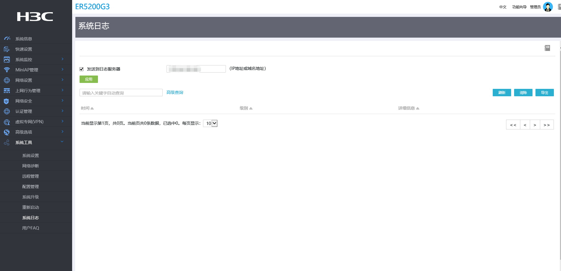 设备型号ER5200G3,Boot ROM 1.02 软件版本Release 0116,web登录查看系统信息页面里的系统日志或系统工具里系统日志,均没有日志记录,请问是哪里没配置记录日志么