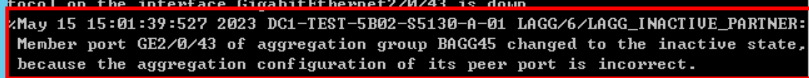 聚合组BAGG45的端口GE2/0/43更改为非活动状态,因为其对等端口的聚合配置不正确