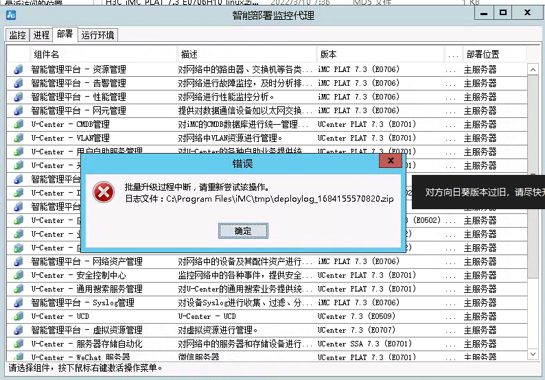 而且从图片上很多组件都是未部署状态,确认下操作是否按操作文档来的吧。