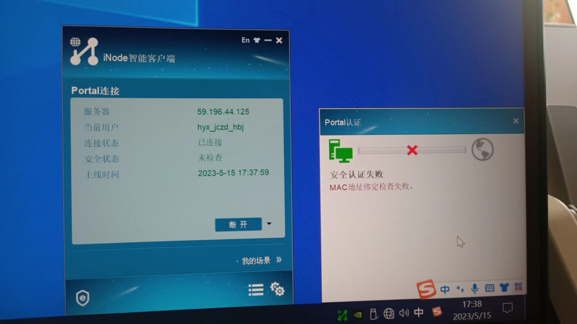 客户现场用imc做的portal认证,用inode客户端登陆,认证策略绑定用户ip和mac。现在有一问题,客户认证账号要换电脑登陆,在把账号绑定的ip和mac地址清楚后,客户账号在另一台电脑还是提示mac地址绑定失败报错,这是什么原因。
