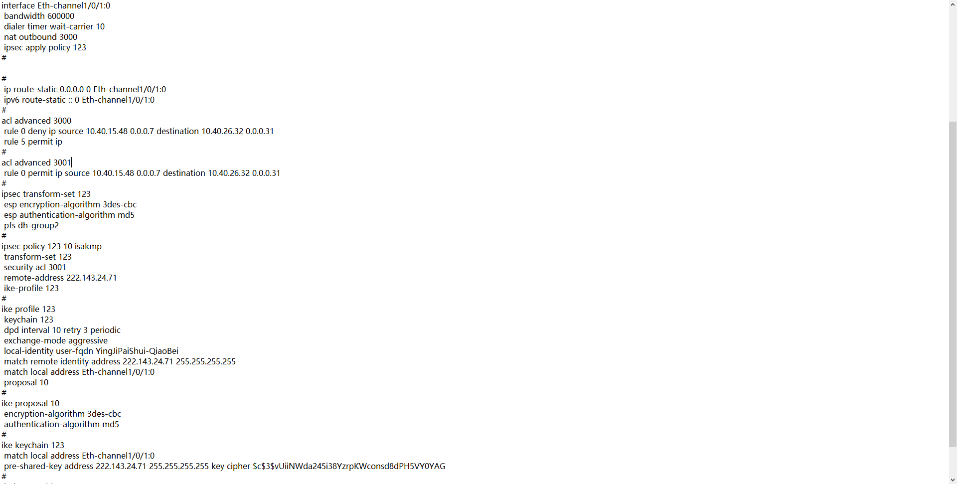 5G路由器对接深信服ipsec-vpn一点日志都没有,能大佬能看出来我这边有问题吗。
