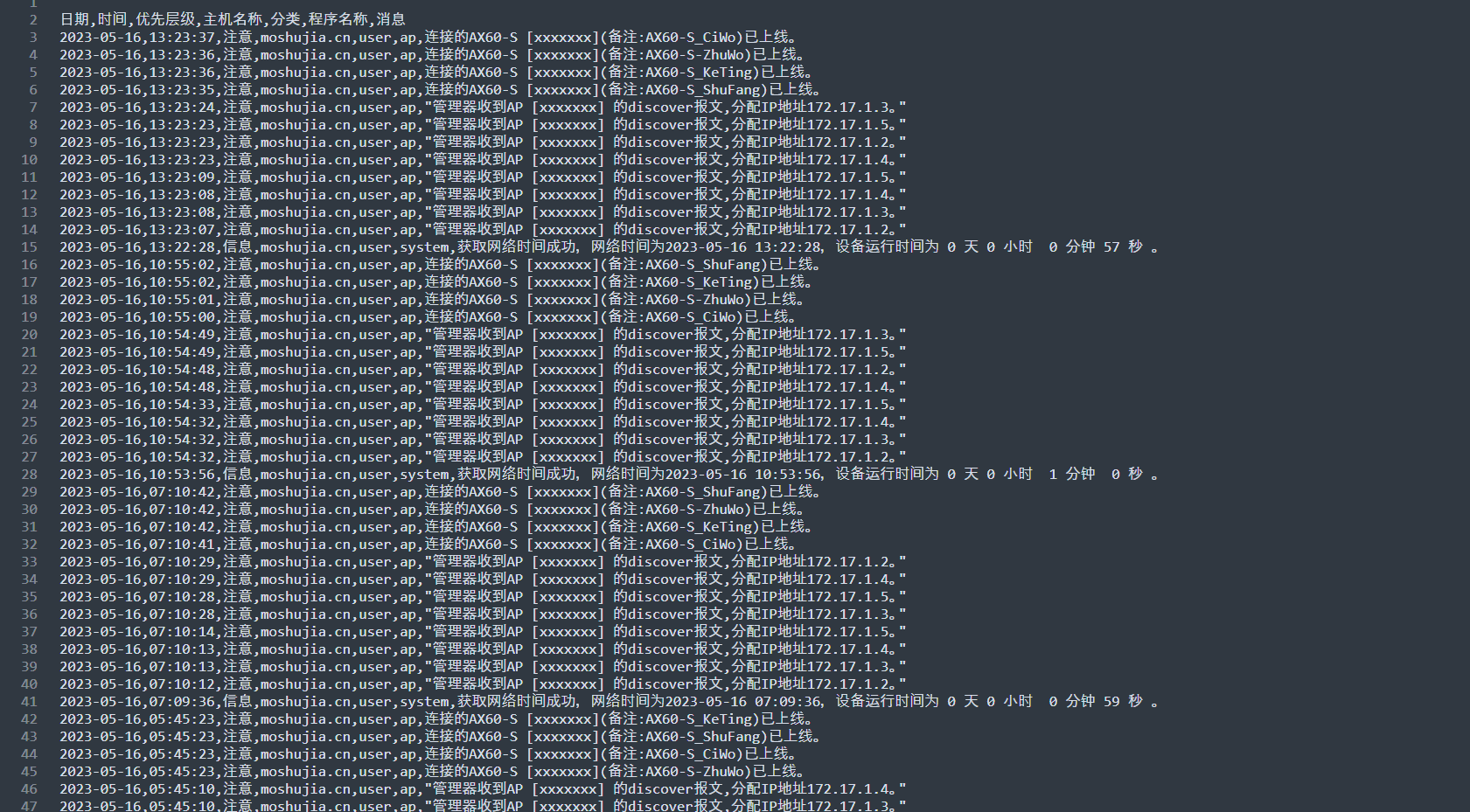 路由模式(MC102G拨号上网),下挂四个AX60-S,内网有群晖在跑,重启的可真频繁。。。。