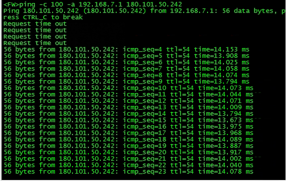 光猫采用拨号模式与防火墙互连,网关都在防火墙上,带上源地址去ping外网,前几个包必丢。