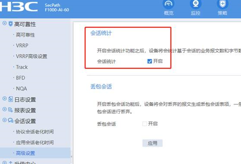 F1000-AI的防火墙开启用户流量排行功能