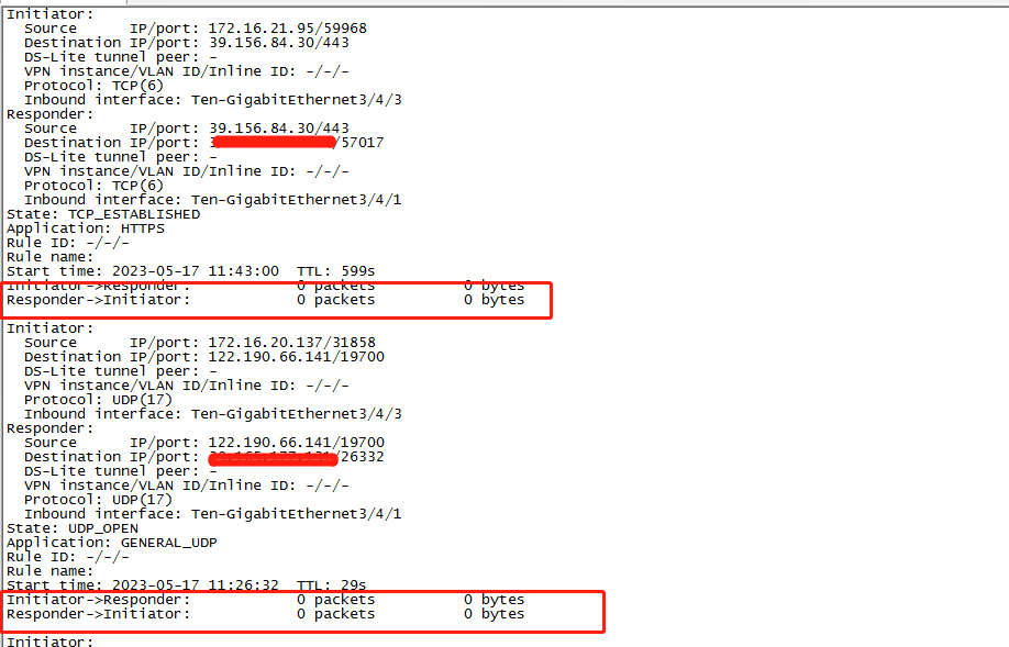 通过命令查看 NAT会话信息 dis nat session verbose 在会数据情况下,发起方和响应方报文数一直为0,通过什么命令能够显示报文数量?