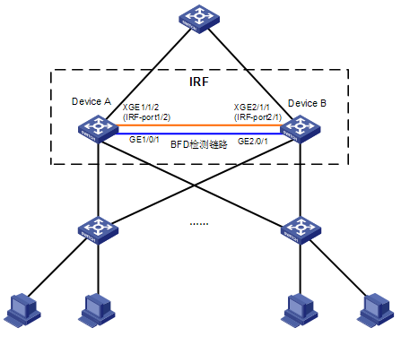设备A和B配置堆叠之后,与下行接入交换机分别是双线连接的,那这下行接口和下行交换机的上联接口该如何配置?