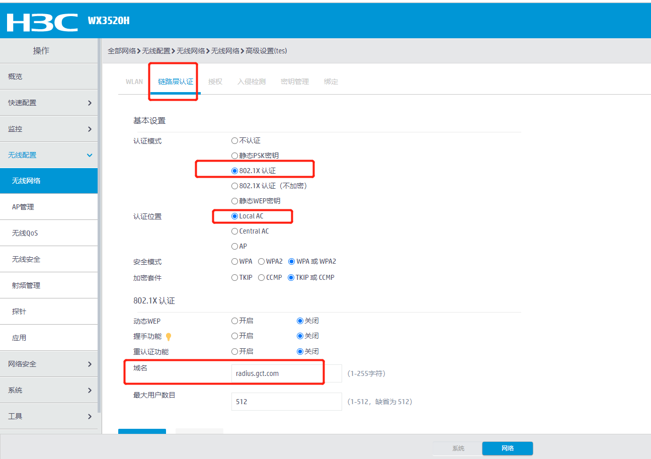 你好!我是是一台WX3520H 设备,可以使用802.1X认证吗?我们认证是一台wind2012的radius服务器,这台服务器加域了,