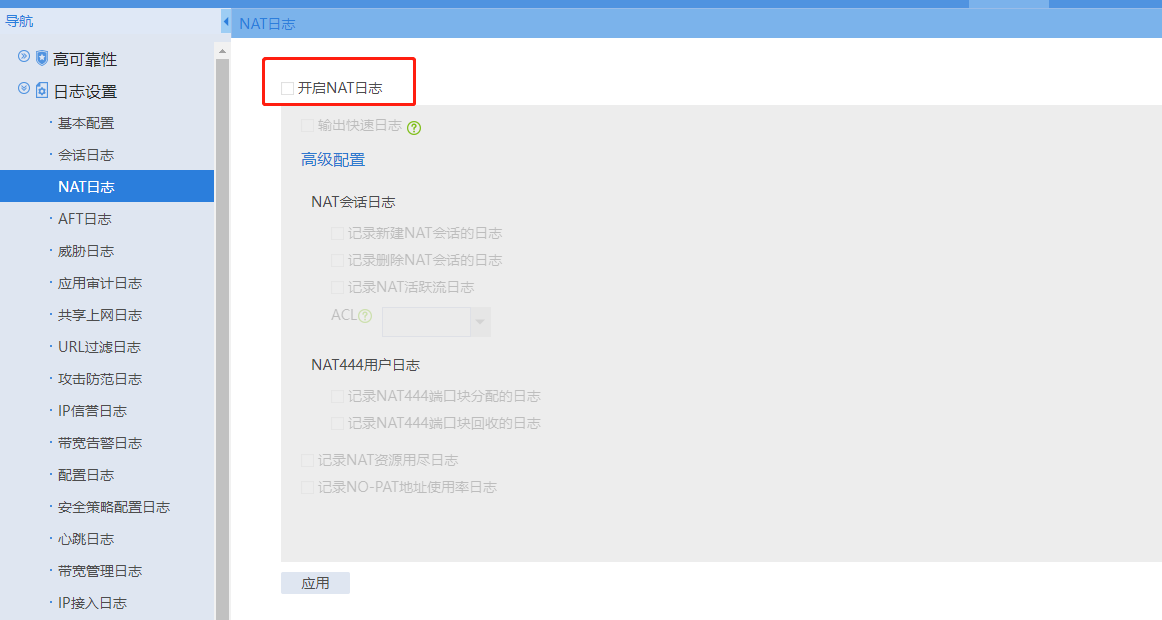 3. 系统视图下配置会话日志的时间阈值、流量阈值、或者新建和删除日志功能