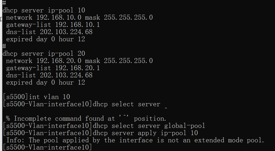 dhcp server apply ip-pool 10指定接口引用对应的地址池,又报错了