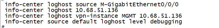 你好 如果是用管理口做为对接日志服务器的接口 我这个配置有什么问题吗?日志服务器用的标准的syslog协议然后端口是udp 514, 路由是没有问题的,并且开启了info-center enable
