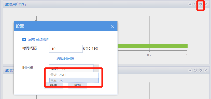 c.威胁排行设置中最多只能显示最新一天的威胁排行,所以,如果24小时内没有新的威胁信息,排行是空的