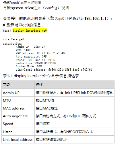 可以在设备命令行查看接口的mac