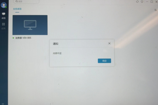 workspace登录提示内存不足、只有这一台瘦终端盒子有此问题。