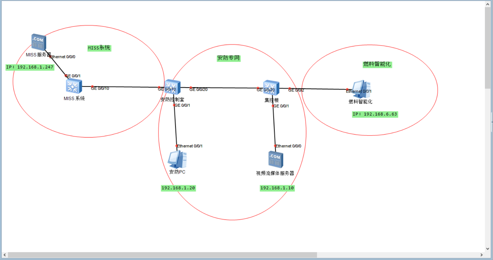 这个我想把MISS系统与燃料智能化隔开,但是安防和集控楼能同时访问他们两个,能不能用VLAN隔开