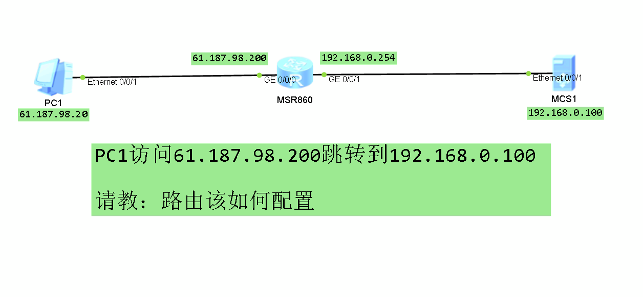 PC1访问61.187.98.200跳转到192.168.0.100 请教:路由该如何配置