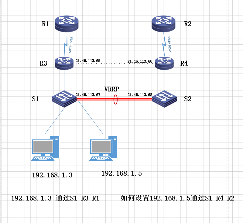 在S1上通过策略路由匹配192.168.1.5,然后扔给S2,配置举例: