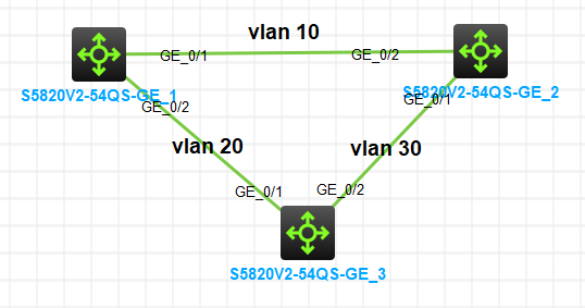 在模拟器上,3台交换机互联,端口全都是access。如下拓扑图,每条链路都只允许一个vlan 通过的,为什么会成环呢?