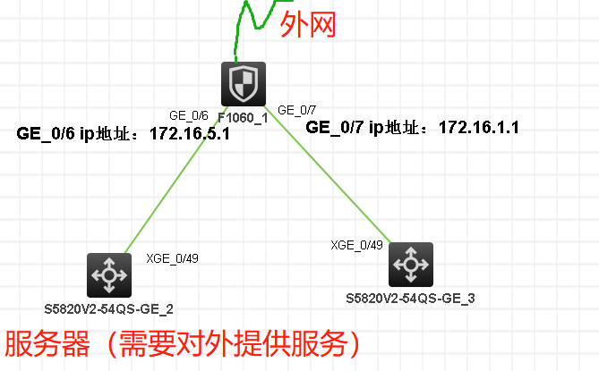 防火墙下面挂着一台网络核心交换机,一台服务器核心交换机,在防火墙上的接口地址分别为172.16.1. 172.16.5.1,如果我想要实现内网的两个网段的用户都可以使用外网地址来访问内网的服务器,这个应该如何配置。