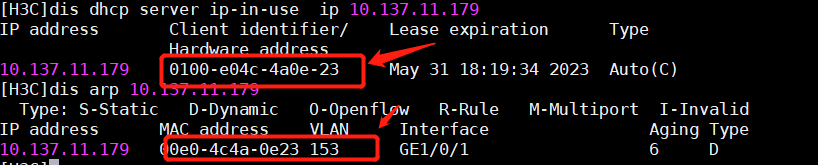 dis dhcp server ip-in-use ip 10.137.11.179